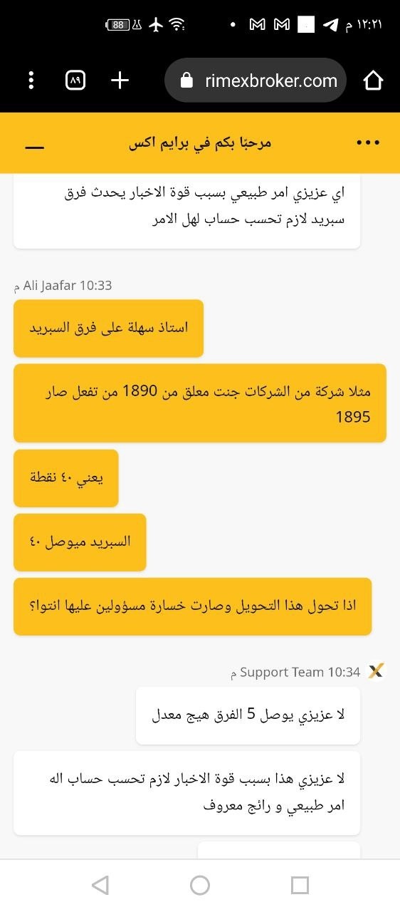 شركة برايم اكس محتالين وكذابين خدمة الزبائن يوهمون الزبائن بمميزات الشركة لكن عند الاشتراك ينكرون ما قالوا كما حدث لي.. عنجما اخبروني ان التداول خلال وقت الاخبار لايتأثر عندهم الا بفارق ٥ نقاط للسبريد وان زاد اكثر او اي مشاكل تحدث خلال الاخبار او التداول يتم تعويضي.. وعند بدء التداول حدث ما لم يكن في الحسبان حيث زاد السبريد بأكثر من ٩٠ نقطة وهذا الذي تسبب بخسارتي كما يدعون ان خسارتي بسبب السبريد.. لكن خلال الفديو يظهر ان الصفقة تغلق قبل الخبر بثواني. اي قبل تفاعل المنصة مع الخبر. ولهذا تبين لي ان ما تم ذكروه من قبل الدعم كله كذب وانهم لايمتون للفوركس بصلة.. وعند اتصال بمدير الشركة احمد الاعرجي اخبرني '' ماطول الفلوس نخسرت يم مزود السيوله فمستحيل اكو تعويض".. يمكنني تزويدكم بفديو يبين ماحدث