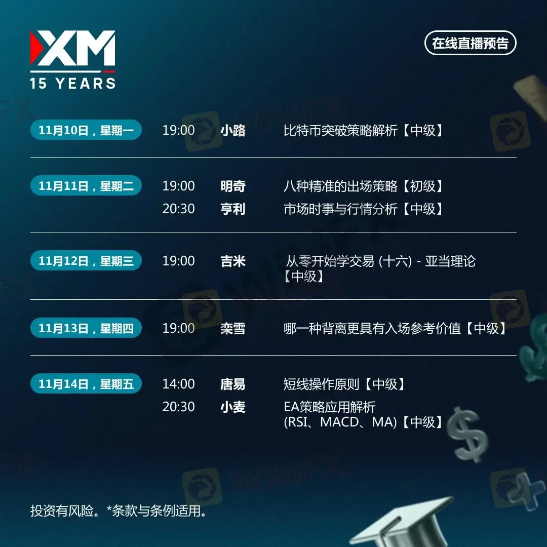 每周一至周五,1小时+实战内容, XM中文直播课堂助你精准把握市场脉动,掌握实战策略与关键出场技巧,提升你的交易胜率!