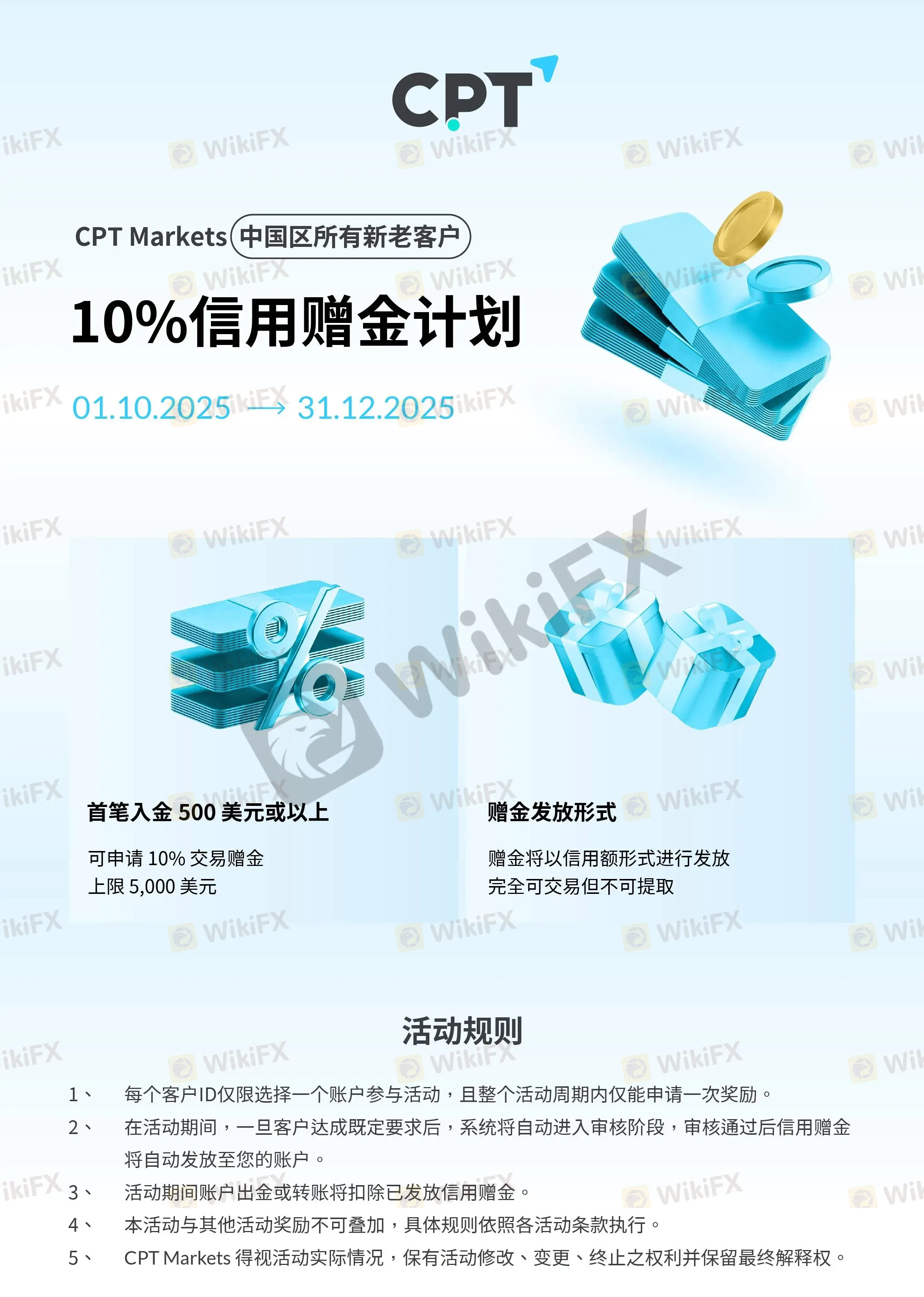 【CPT Markets】10%信用赠金计划