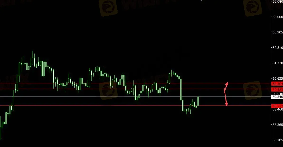 美元指数受支撑,原油反弹,关注支撑位58.710,4小时看多至60.310;关注压力位59.890,4小时看空至58.360。