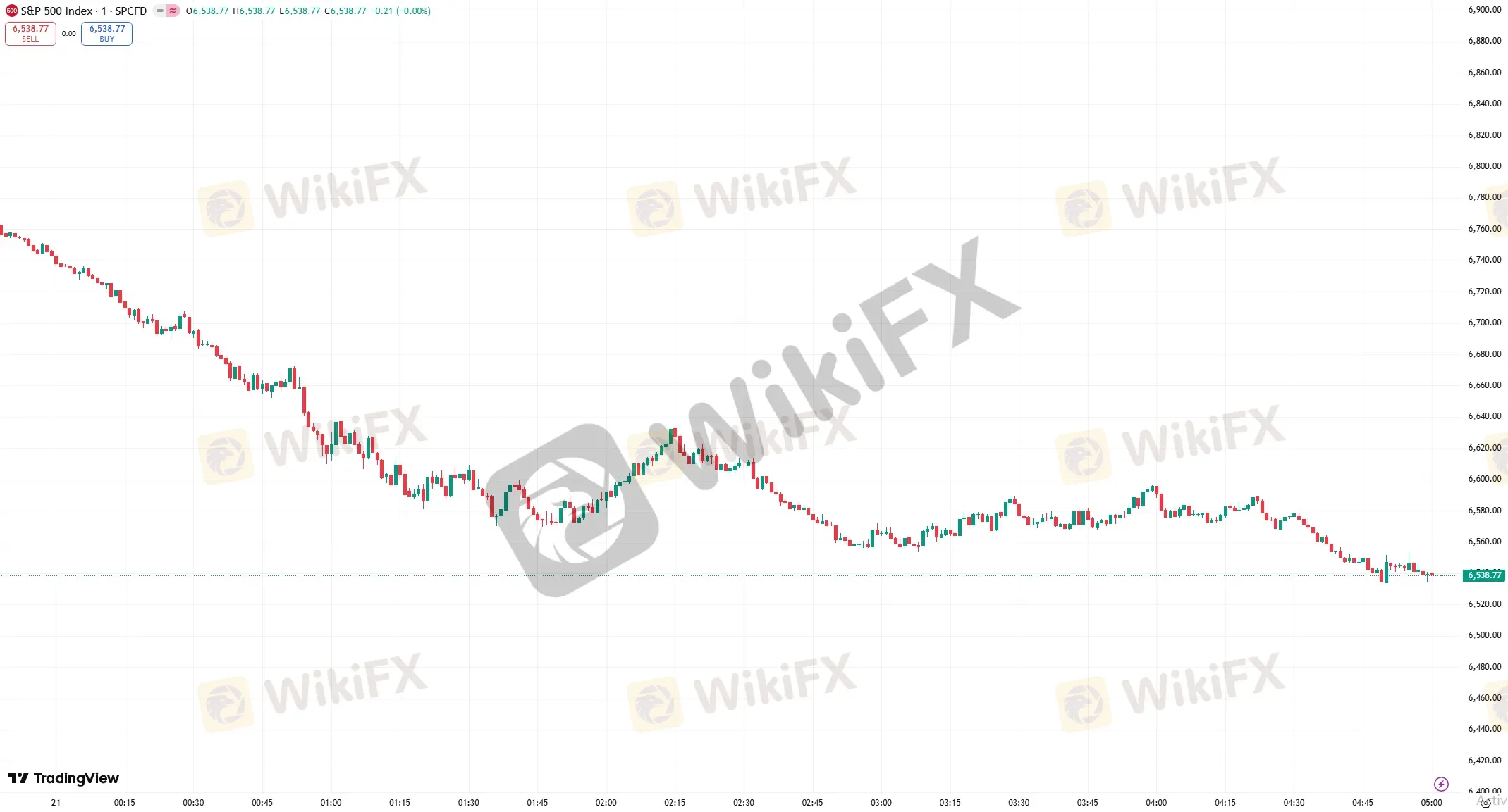 标普 500 指数跌 103.40 点,跌幅为 1.56%,报 6538.76 点