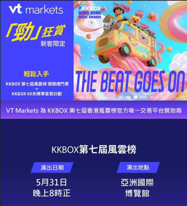 【KKBOX風雲榜x VT markets 聯名贈票活動】 活动剩下三天!至5/25截止,名额有限